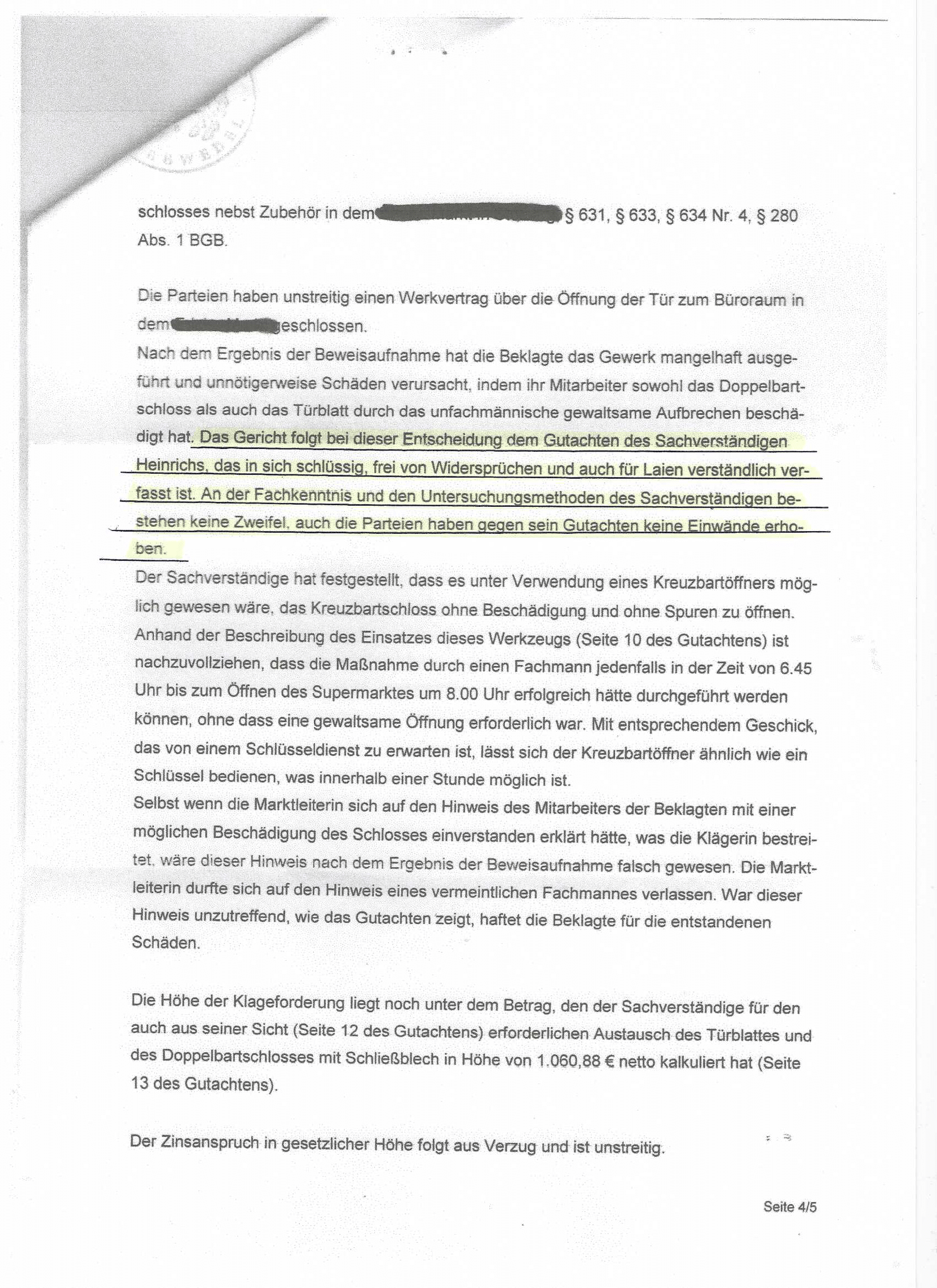 „Das Gericht folgt den Ausführungen des Sachverständigen……………….. es wurden keine Einwände erhoben.“